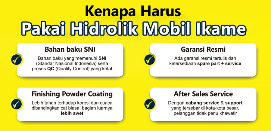 Kami memproduksi sendiri hidrolik mobil dan hidrolik motor, serta menghadirkan produk berkualitas lainnya seperti mesin steam, kompresor, Spare Part dan Aksesories melalui impor langsung dari China.